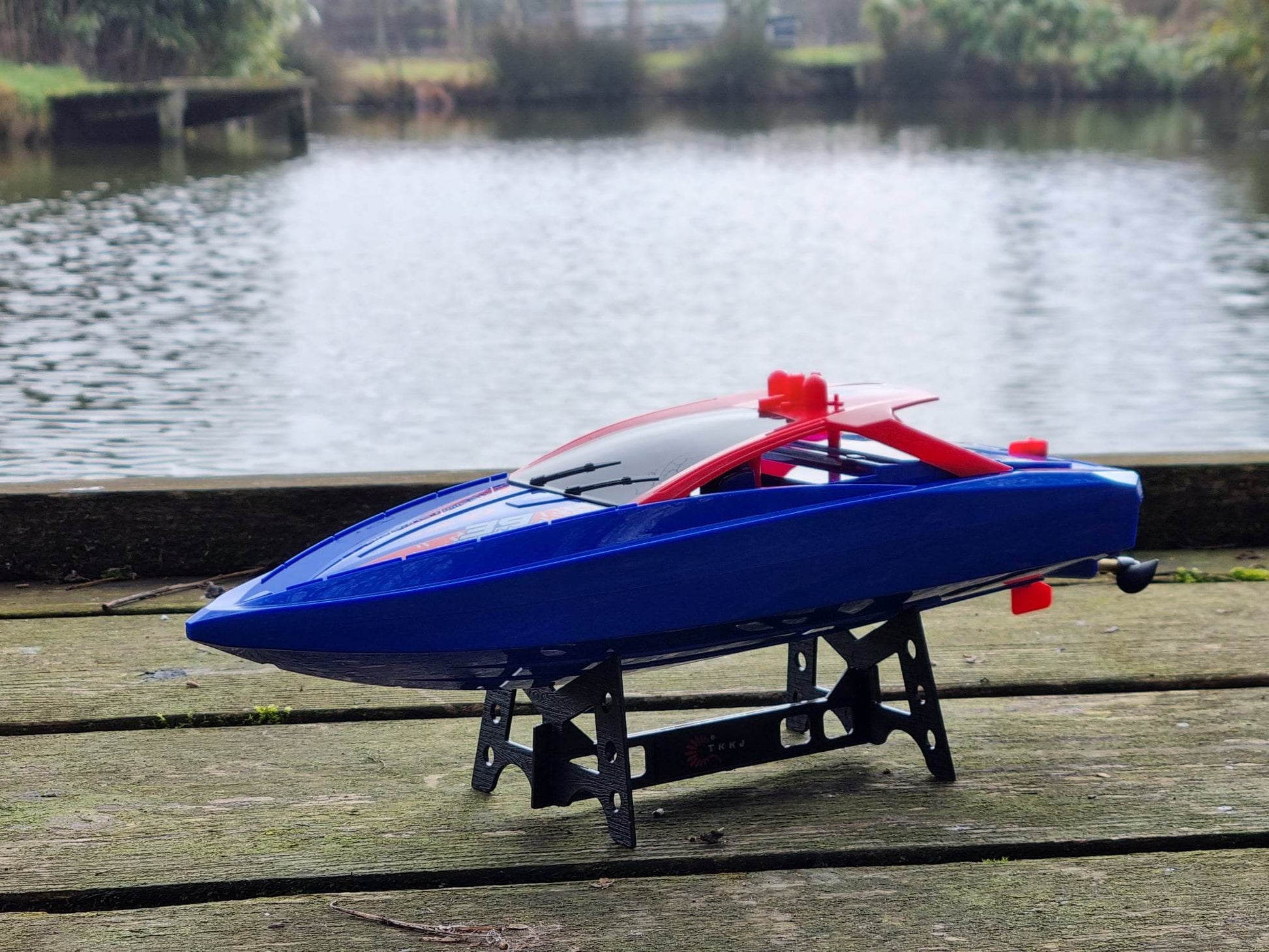 RC Electric boats features an anti-tilt hull, you can flick the controls and right the ship when the boat goes upside down, taking remote control boat back in the game ! sail right every time! The auto-correcting rudder means no more veering off course when you're in the heat of the race.