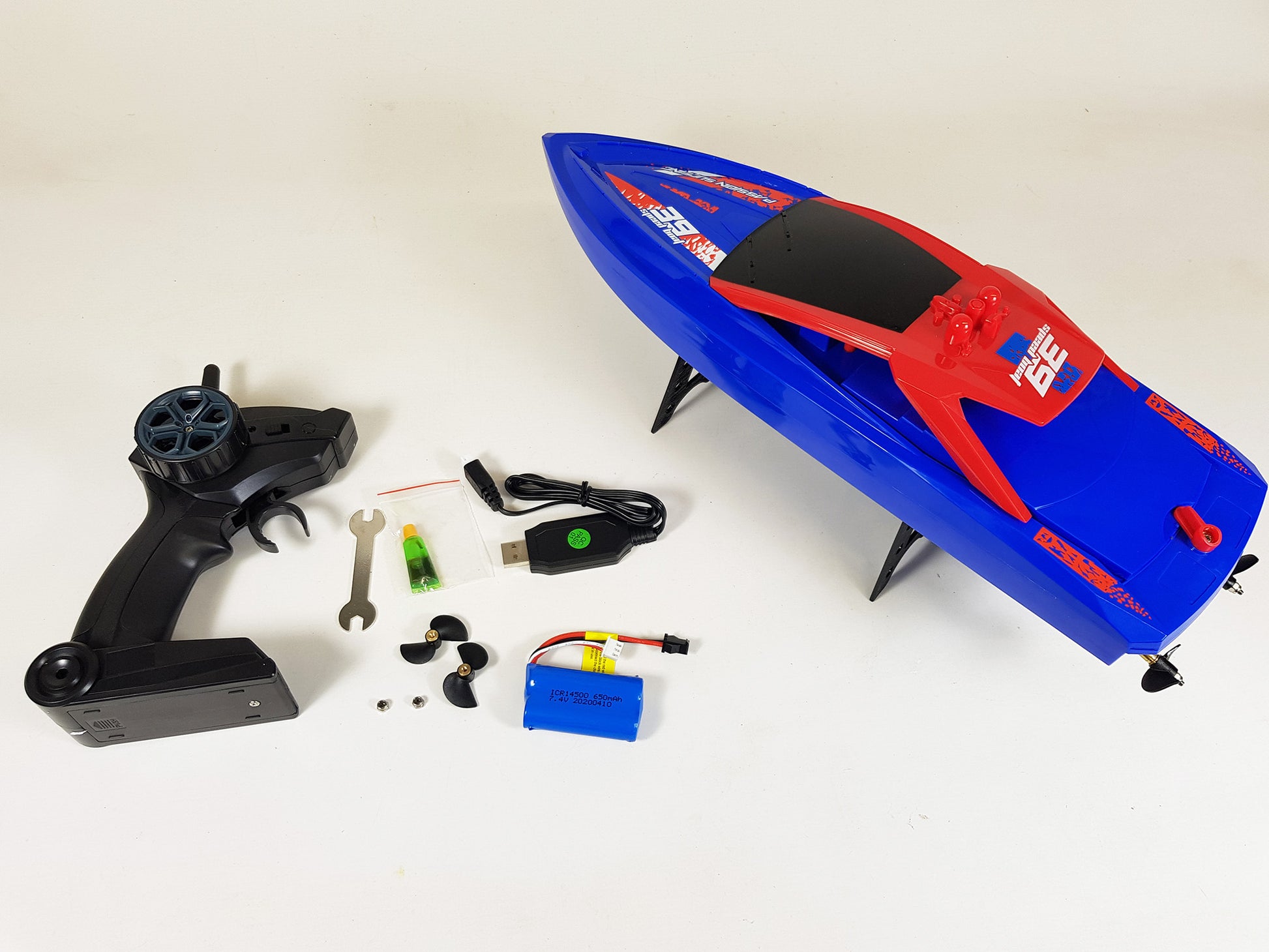 Four-channel remote-controlled speed boat with built-in water-cooling heat dissipation system, travelling speed is about 35 km / h. And the advanced 2.4 G technology of frequency connection allows RC boat remote distance up to 150M