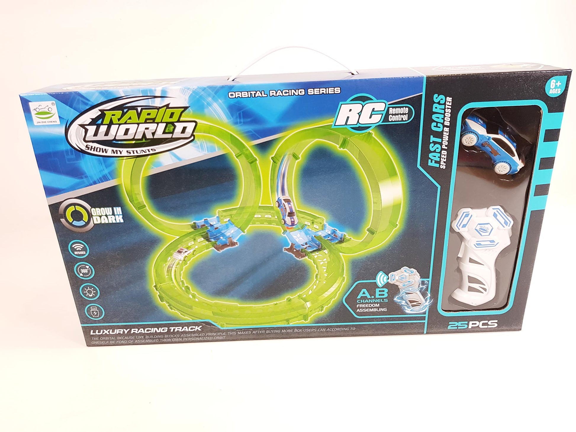 Hot Wheels Style Kids RC Race Train Track Stunt Rail Car Glow In The Dark Build Your Own Toy Set