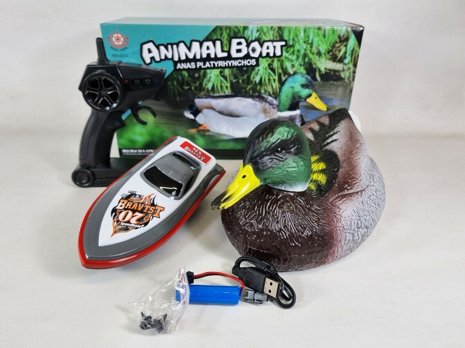 - 2. 4 GHz remote control: With a 2.4 GHz remote control, the remote control distance is farther and many people will not be disturbed when using it. The resin simulates a Duck head and is realistic in shape.
