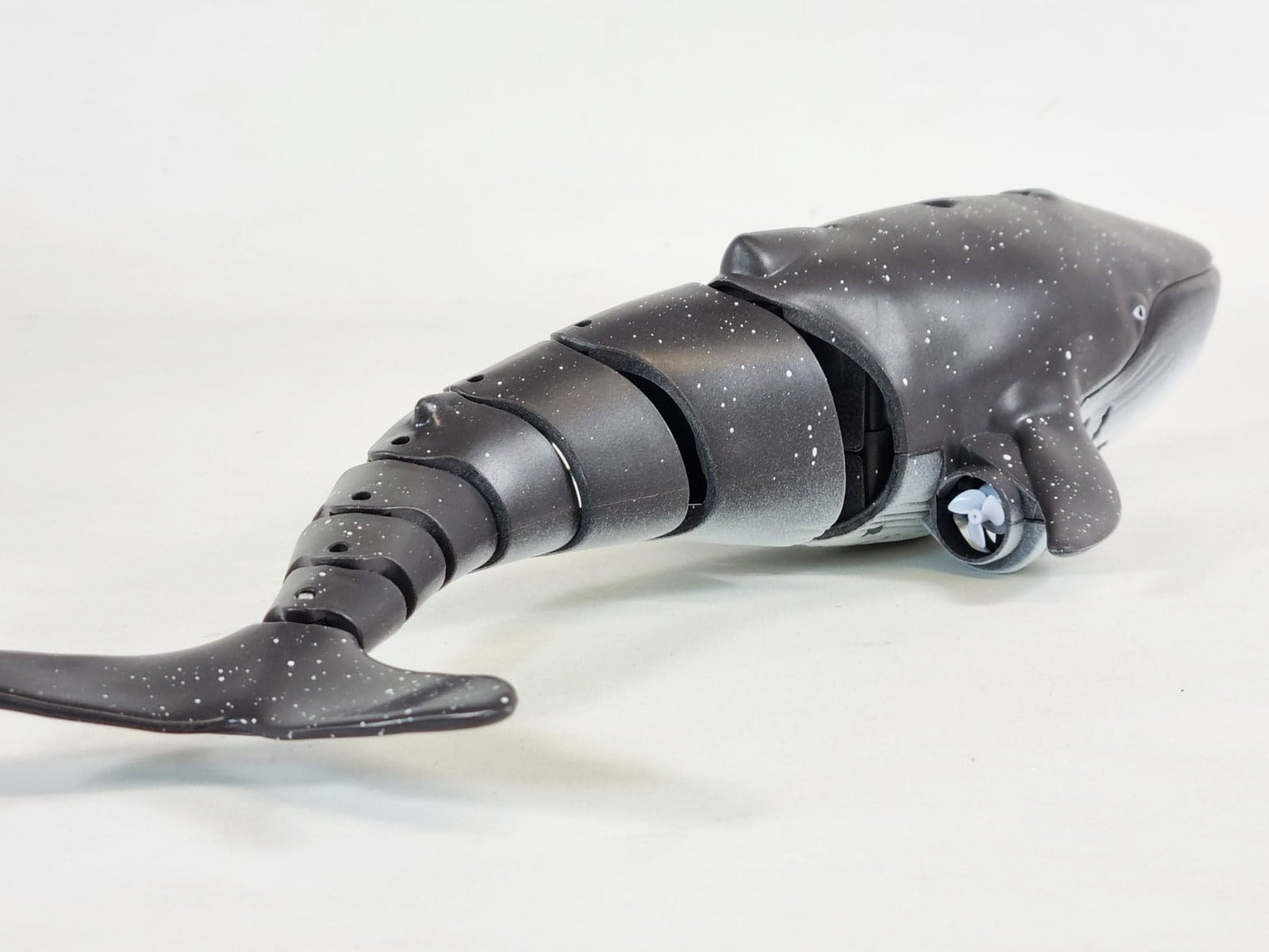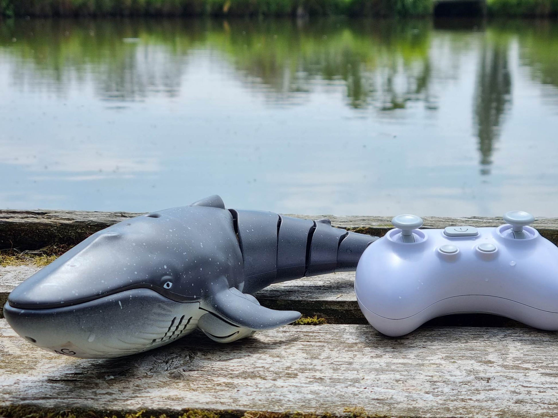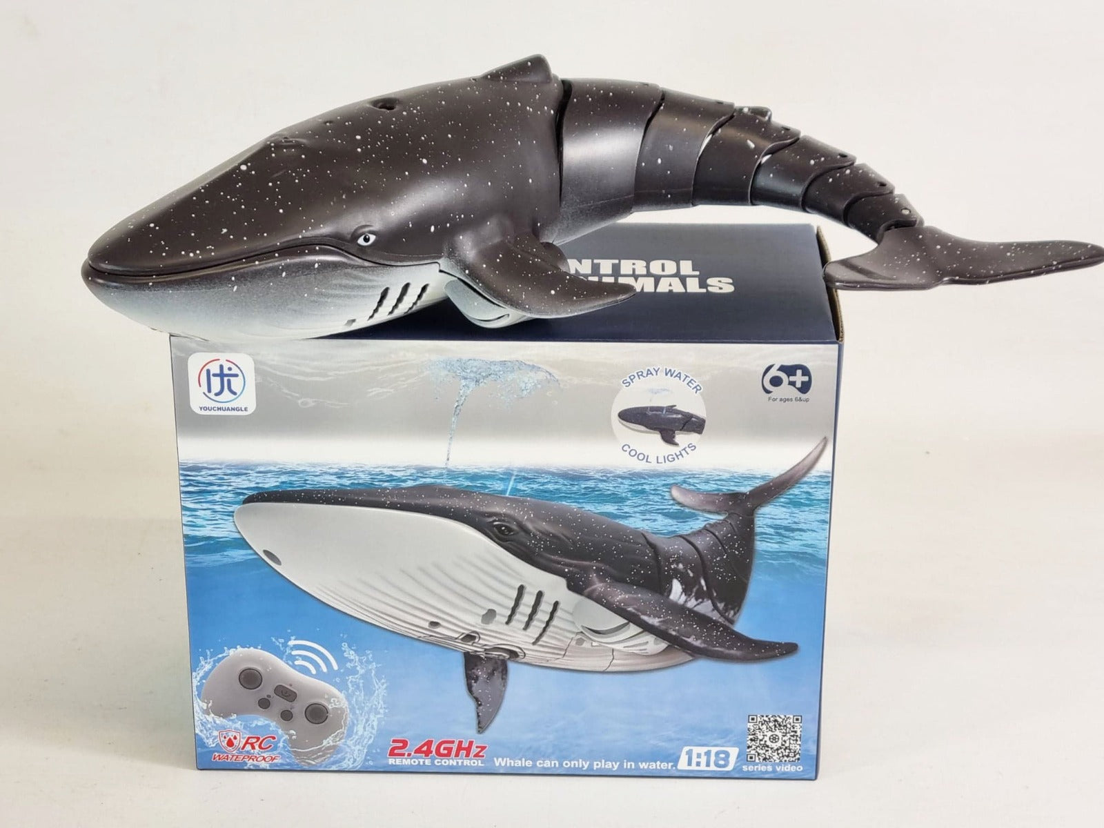 - 【2.4GHz Remote Control】Exclusive control of 2.4G frequency, many people can operate together without interference. The remote control distance is about 40 meters, and Bluetooth pair can only swim in the water, with the function of forward/backward, turn left/right, variable speed control the specific and subtle movement of a whale.