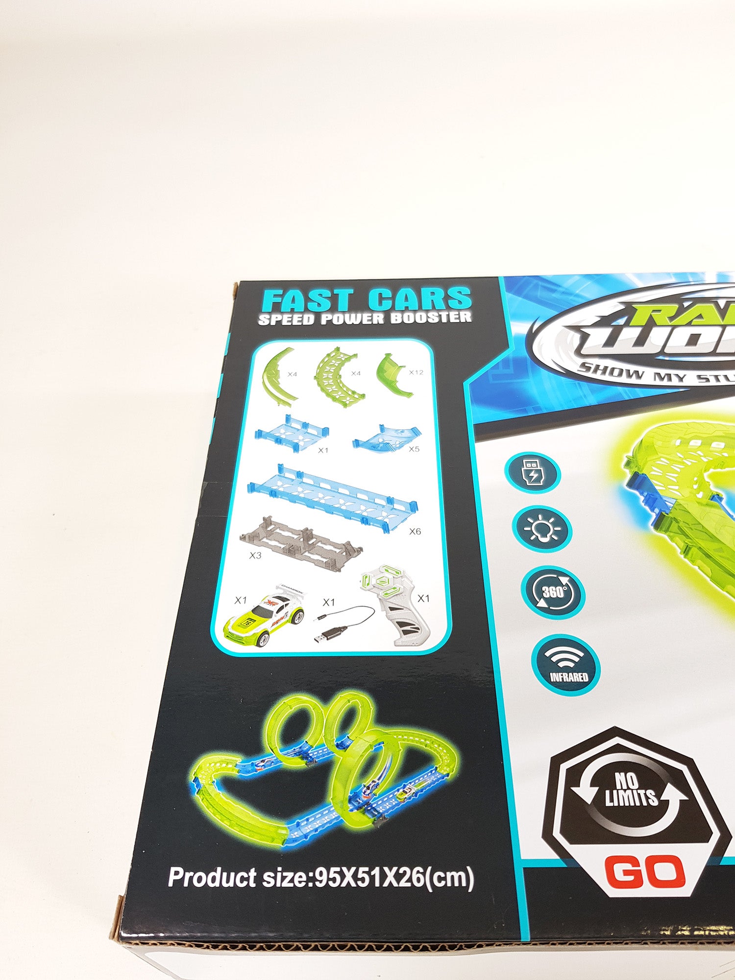 FAST CARS RC GLOW IN THE DARK SLOT CAR RACE TRACK - INFRARED WIRELESS LOOP TRACK